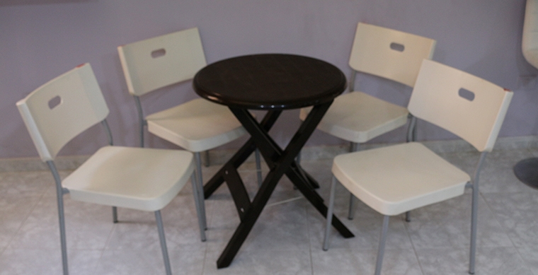 Plateau de la table un peu abîmé, les chaises en très bon état